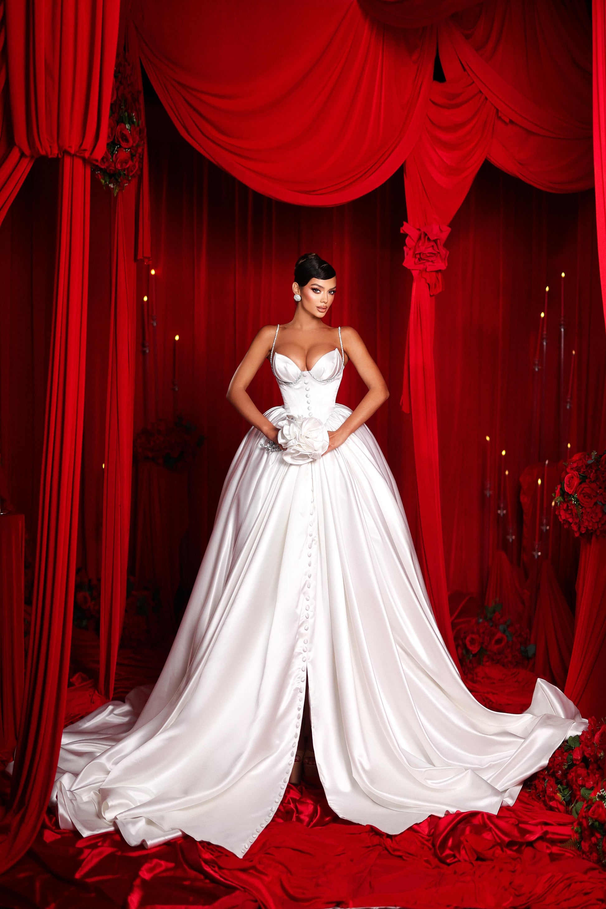 From the Gentiana Berisha Aura of Elegance Collection, this exquisite wedding gown is meticulously crafted in our Kosovo atelier by skilled artisans. This piece features carefully selected premium fabrics and detailed handwork to create a truly unique bridal experience. This exclusive design embodies the elegant aesthetic that defines the Gentiana Berisha Aura of Elegance collection.
