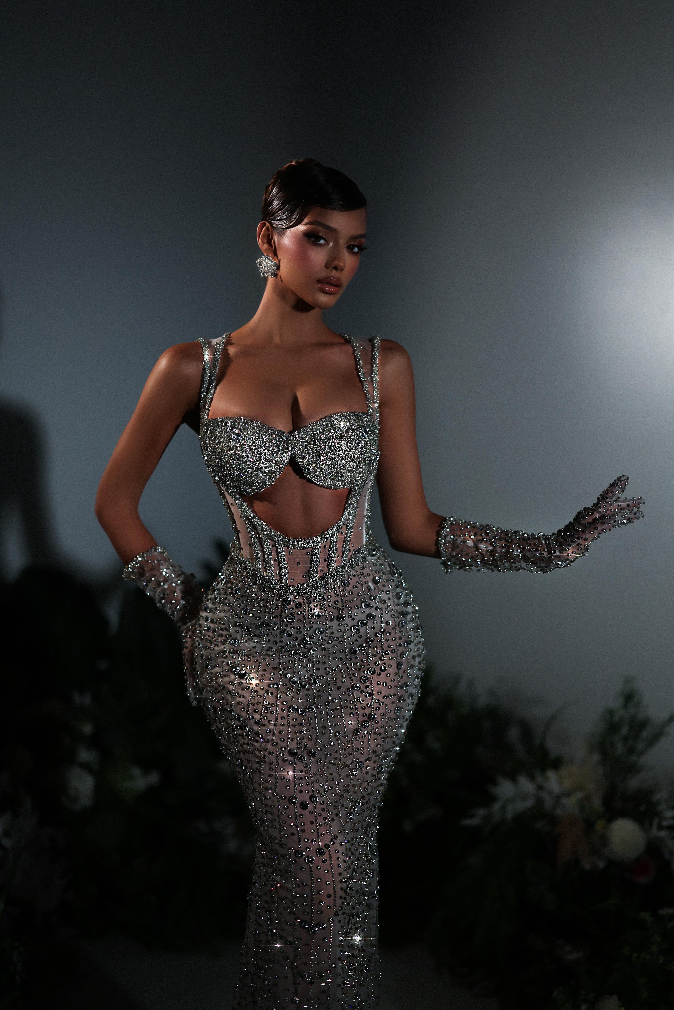 From the Gentiana Berisha Aura of Elegance Collection, this exquisite wedding gown is meticulously crafted in our Kosovo atelier by skilled artisans. This piece features carefully selected premium fabrics and detailed handwork to create a truly unique bridal experience. This exclusive design embodies the elegant aesthetic that defines the Gentiana Berisha Aura of Elegance collection.