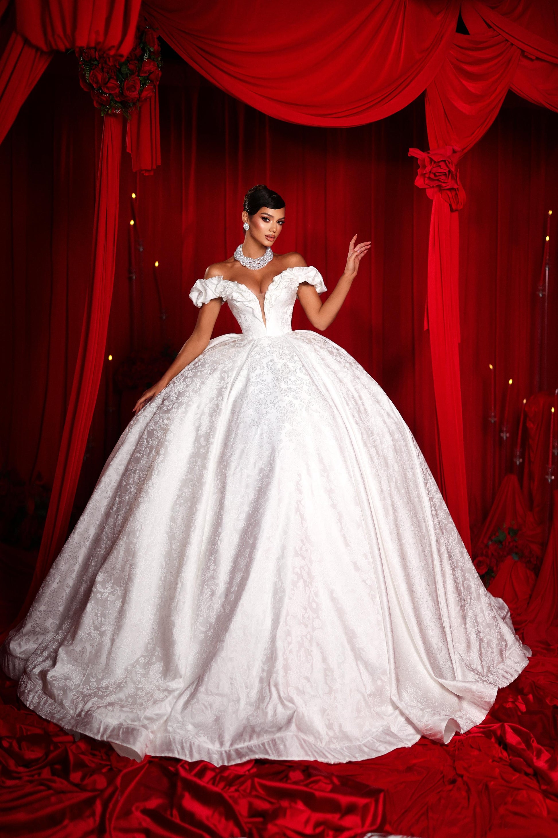 From the Gentiana Berisha Aura of Elegance Collection, this exquisite wedding gown is meticulously crafted in our Kosovo atelier by skilled artisans. This piece features carefully selected premium fabrics and detailed handwork to create a truly unique bridal experience. This exclusive design embodies the elegant aesthetic that defines the Gentiana Berisha Aura of Elegance collection.