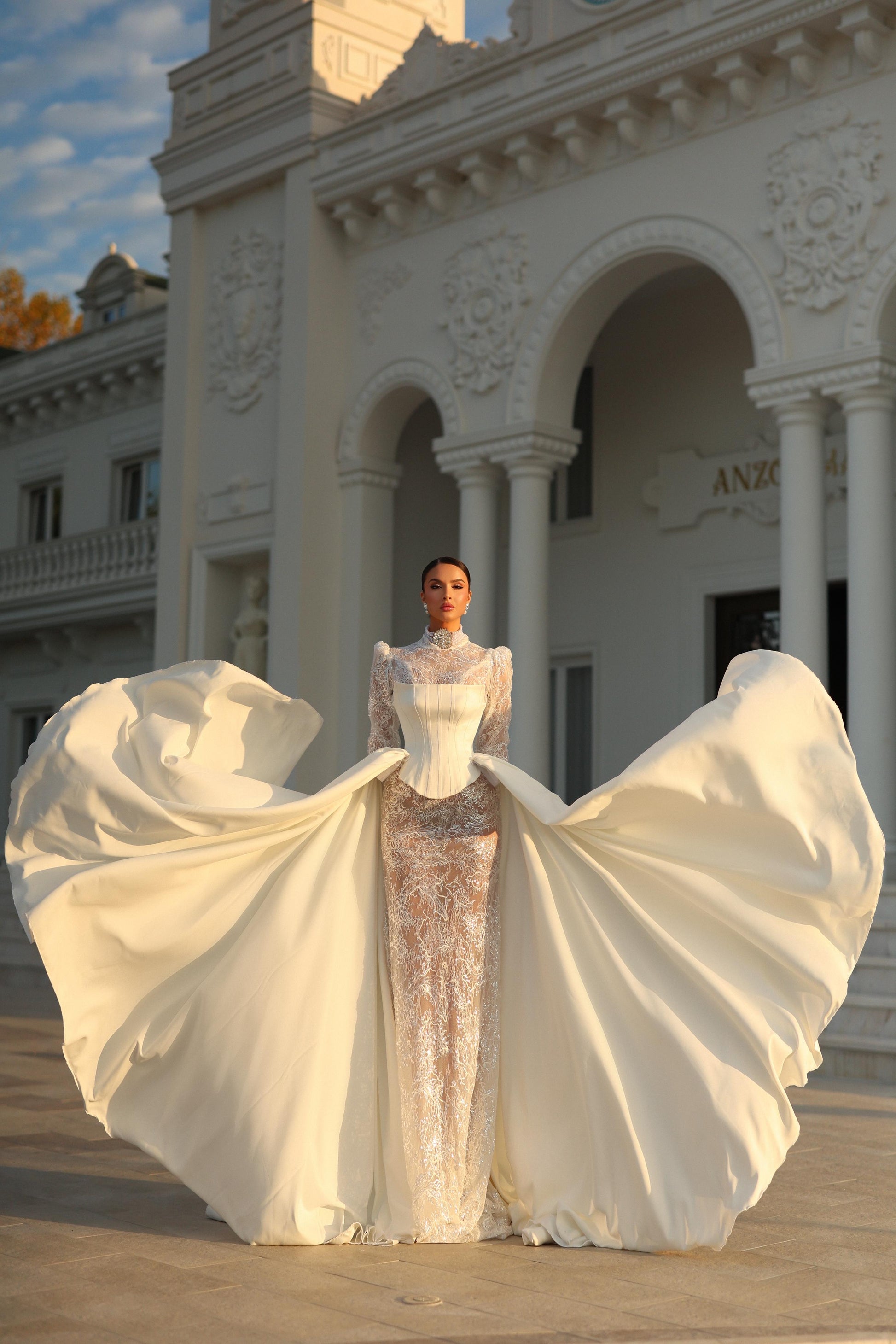 From the Gentiana Berisha Bridal 2025 Collection, this exquisite wedding gown is meticulously crafted in our Kosovo atelier by skilled artisans. This piece features carefully selected premium fabrics and detailed handwork to create a truly unique bridal experience. This exclusive design embodies the elegant aesthetic that defines the Gentiana Berisha bridal collection.