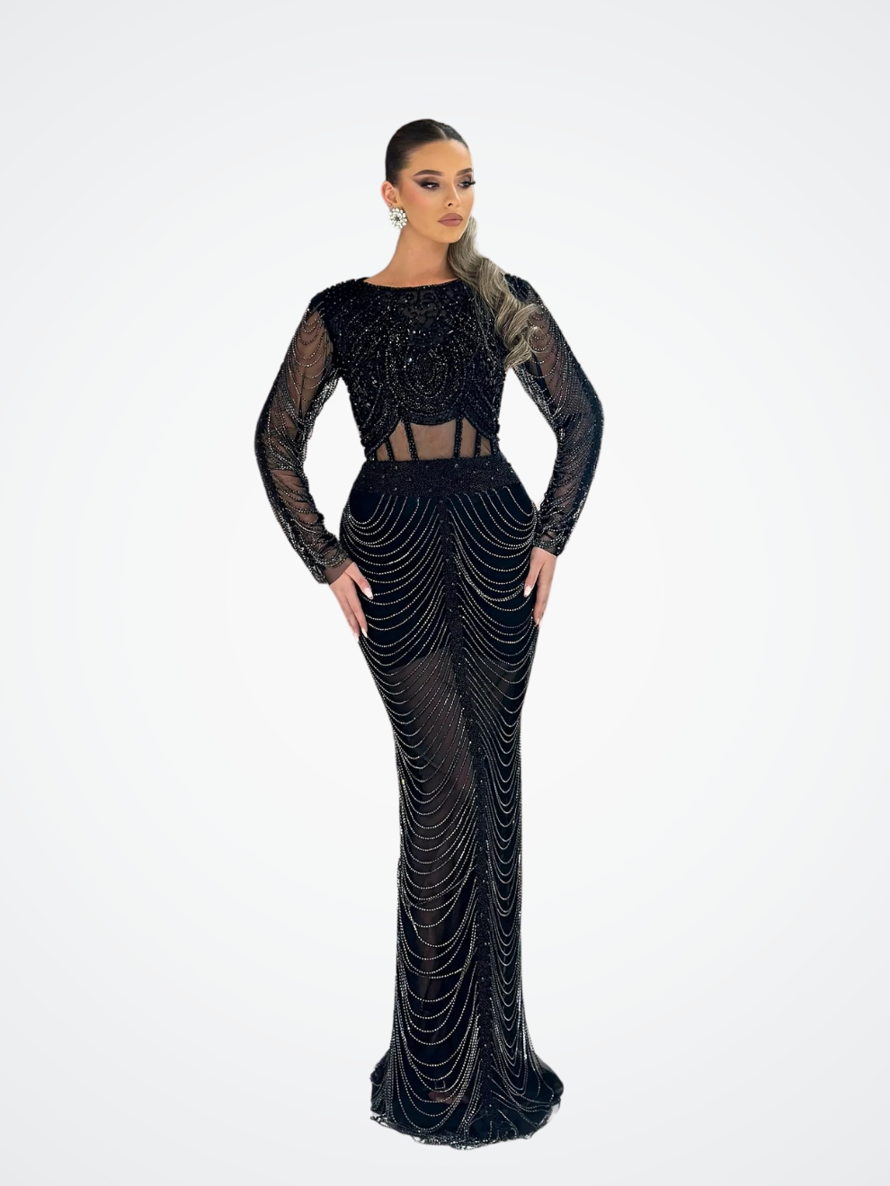 From the Gentiana Berisha Black Edition Collection, this exquisite wedding gown is meticulously crafted in our Kosovo atelier by skilled artisans. This piece features carefully selected premium fabrics and detailed handwork to create a truly unique bridal experience. This exclusive design embodies the elegant aesthetic that defines the Gentiana Berisha Black Edition collection.