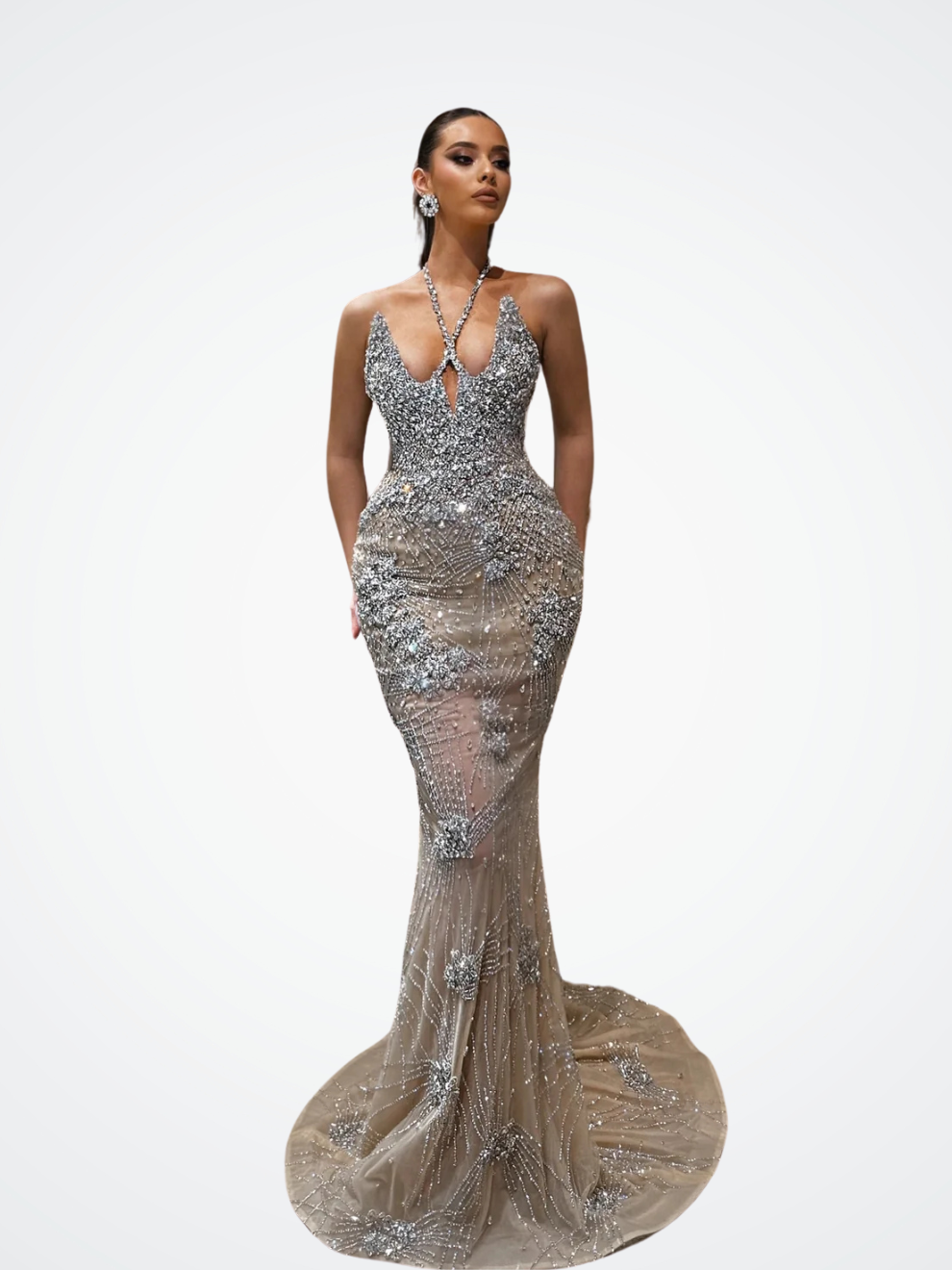 From the Gentiana Berisha Charm Collection, this exquisite wedding gown is meticulously crafted in our Kosovo atelier by skilled artisans. This piece features carefully selected premium fabrics and detailed handwork to create a truly unique bridal experience. This exclusive design embodies the elegant aesthetic that defines the Gentiana Berisha Charm collection.