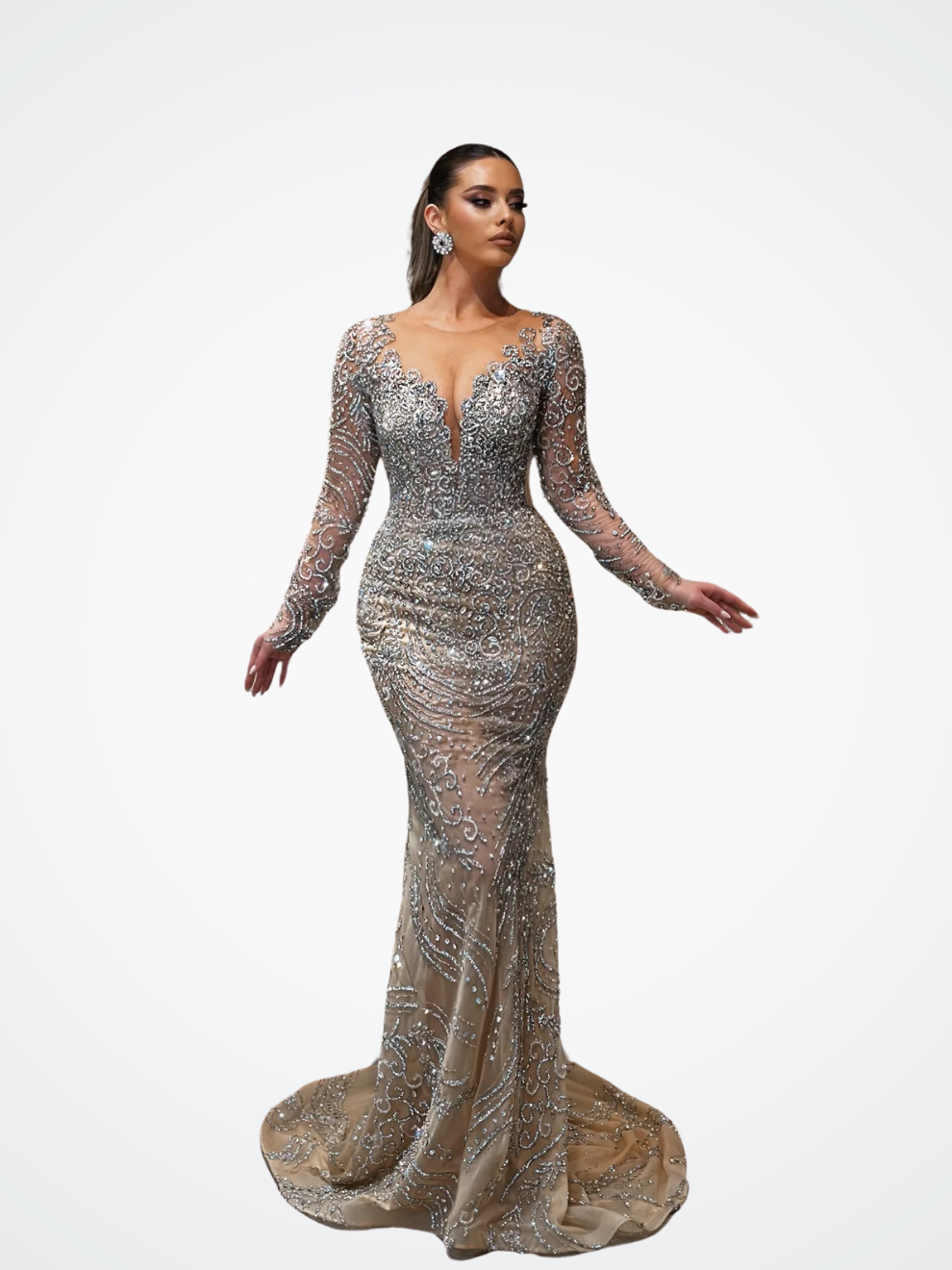 From the Gentiana Berisha Charm Collection, this exquisite wedding gown is meticulously crafted in our Kosovo atelier by skilled artisans. This piece features carefully selected premium fabrics and detailed handwork to create a truly unique bridal experience. This exclusive design embodies the elegant aesthetic that defines the Gentiana Berisha Charm collection.